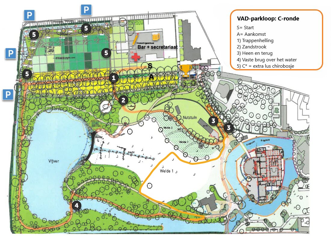 Hierbij het parcours (C- ronde) voor de reeksen vanaf de meisjes kadetten en scholieren tot en met de heren juniors, seniors 1 en seniors 2. De meisjes kadetten en scholieren lopen wel eerst nog een B- ronde, evenals de dames sportiva's 1-2 en 3.